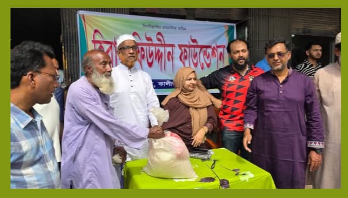 ঝিনাইদহের কালীগঞ্জে হিরা-রফিউদ্দীন ফাউন্ডেশনের উদ্যোগে ৫ শতাধিক হতদরিদ্র ও অসহায় পরিবারের মাঝে ঈদ উপহার সামগ্রী বিতরণ করা হয়েছে। মঙ্গলবার (১৭ মার্চ) কালীগঞ্জ-নলডাঙ্গা সড়কস্থ ফাউন্ডেশনের স্থানীয় কার্যালয়ে আয়োজিত এক অনুষ্ঠানের মাধ্যমে এসব উপহার সামগ্রী তুলে দেওয়া হয়।