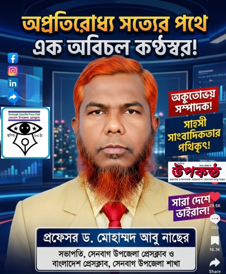 সাংবাদিকতা মানেই সত্যের সন্ধান, অন্যায়ের বিরুদ্ধে প্রতিবাদ আর সমাজের কল্যাণে নিরলস কাজ। সেই আদর্শকে বুকে ধারণ করে নোয়াখালী জেলায় এক অনন্য দৃষ্টান্ত স্থাপন করেছেন প্রফেসর ড. মোহাম্মদ আবু নাছের। তিনি বর্তমানে সেনবাগ উপজেলা প্রেসক্লাব ও বাংলাদেশ প্রেসক্লাব, সেনবাগ উপজেলা শাখার সভাপতি, নোয়াখালী সাংবাদিক ইউনিটির যুগ্ম আহবায়ক, ন্যাশনাল রিপোর্টার্স ইউনিটি ফোরাম এর কেন্দ্রীয় কমিটির সহ-সভাপতি এবং দৈনিক উপকন্ঠ পত্রিকার প্রকাশক ও সম্পাদক হিসেবে দায়িত্ব পালন করছেন। তিনি জাতীয় দৈনিক আজকের বসুন্ধরা পত্রিকার স্টাফ রিপোর্টার। বিভিন্ন দৈনিক প্রিন্ট মিডিয়া ও ইলেক্ট্রনিক্স মিডিয়ায় তাঁর প্রেরিত সংবাদ প্রকাশ ও প্রচার হওয়ায় দৃষ্টি নন্দন কয়েকটি ভাইরাল নিউজ মানুষের মাঝে আশার আলো জুগিয়েছে।