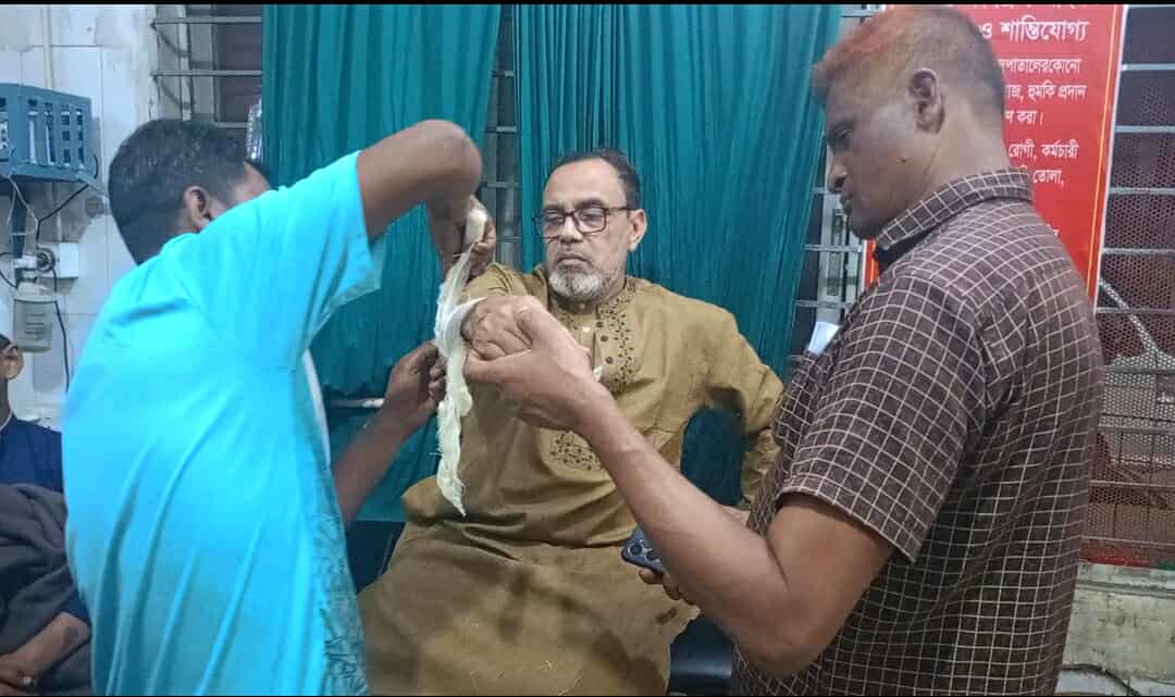 শারীরিক ভাবে লাঞ্ছিত করে।এসময় পুলিশ সদস্যরা এগিয়ে আসলে তারা নিরস্ত্র পুলিশের উপর অতর্কিত হামলা চালায় এতে আমিসহ ৮ পুলিশ সদস্য আহত হই।