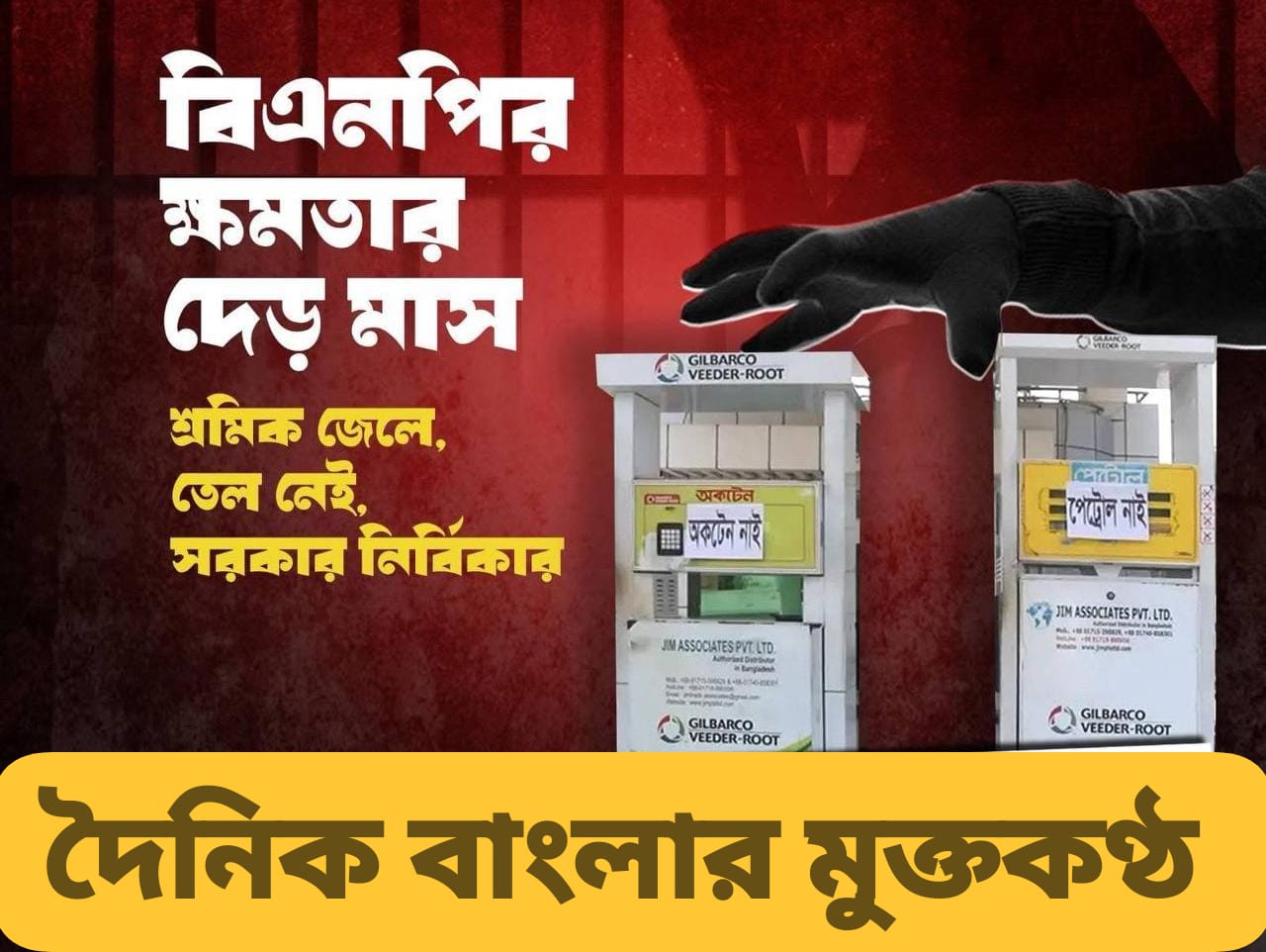 সারাদেশে আটটি বিভাগের জ্বালানি তেল সরবরাহ বন্ধ হয়ে গেছে। সাধারণ মানুষ পাম্পে গিয়ে ফিরে আসছে খালি হাতে। কৃষক ট্রাক্টরে তেল দিতে পারছে না, পরিবহন শ্রমিক গাড়ি চালাতে পারছে না, ছোট ব্যবসায়ী জেনারেটর চালু রাখতে পারছে না। আর এই সংকটের জন্ম দিয়েছে খোদ সরকারের একজন কর্মকর্তা, যার পেছনে আছে এই সরকারের চিরপরিচিত দাপট আর ক্ষমতার অহংকার।
