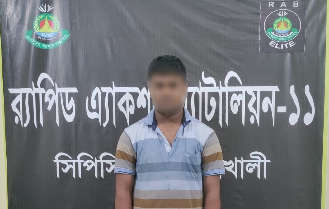 এর আগে সোমবার রাতে নোয়াখালীর রামগঞ্জ উপজেলার পূর্ব বাজারের পোস্ট অফিস সংলগ্ন এলাকা থেকে তাকে গ্রেপ্তার করা হয়। গ্রেপ্তার রাকিব নোয়াখালীর বেগমগঞ্জ উপজেলার রামগঞ্জ ইউনিয়নের রাজেন্দ্রপুর বড় কান্দাজ বাড়ির জামাল উদ্দিনের ছেলে।