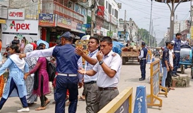 এ ছাড়াও বিভিন্ন পয়েন্টে ঘুরে দেখা যায়, শহরের চৌরাস্তায়, বাসস্ট্যান্ড গোলচত্বরে ট্রাফিক পুলিশ তাদের দায়িত্ব পালন করছেন। পুলিশের সঙ্গে সহযোগী হিসেবে কাজ করছেন শিক্ষার্থীরা সহ আনসার বাহিনীরাও। ছাত্র-জনতার একদফা আন্দোলনে পুলিশের সঙ্গে ব্যাপক সংঘর্ষের ঘটনায় অন্তত ৫ শতাধিক পুলিশ, শিক্ষার্থী ও সাধারণ মানুষ নিহত হয়েছেন। অনেক থানা ও ট্রাফিক পুলিশ বক্সে ভাঙচুর ও অগ্নিসংযোগ করা হয়েছে। এর আগে, গত ৫ আগস্ট (সোমবার) শেখ হাসিনা সরকারের পতনের পর থেকে ট্রাফিক পুলিশ সহ সব ইউনিটের পুলিশ সদস্য জীবনের নিরাপত্তার শঙ্কায় কর্মবিরতিতে চলে যান। এরপর থেকে সড়কে শৃঙ্খলার হাল ধরেন শিক্ষার্থীরা। এতে অনেক শিক্ষার্থী অসুস্থ হয়ে পড়েন। শিক্ষার্থীরা সড়কে যানবাহন নিয়ন্ত্রণের কাজে নিজেদের যুক্ত করায় বাহবা পাচ্ছেন অনেকেরই। তবে ছয়দিন পর ট্রাফিকের পুলিশ সদস্যরা রাস্তায় ফিরলেও তাদের মধ্যে এখনও রয়েছে অনেক জড়তা, রয়েছে আতঙ্ক। তাই তাদের সঙ্গে এক হয়ে জনগণের ভোগান্তি দূরীকরণে পয়েন্টগুলোতে কাজ করছেন শিক্ষার্থীরা।