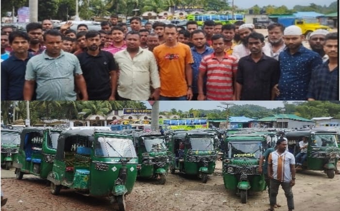 অবস্থান ধর্মঘট পালন করেন। বান্দরবান জেলার সিএনজি, চালক ও মালিক সমিতি। লামা পৌর বাস স্ট্যান্ডে। - বাংলার মুক্ত কন্ঠ