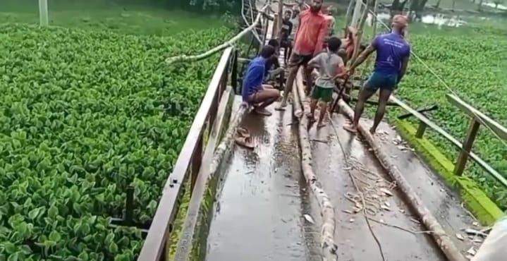 আওয়ামী সরকারের ১৫ বছরে এত উন্নয়নের জোয়ার ভয়ে গেলেও চোঁখে পরার মত ৫ বছরেও পটুয়াখালী জেলা গলাচিপা উপজেলার চরবিশ্বাস ইউনিয়নের ও চর কপালভেরা যাতায়াতের একমাত্র ঝুঁকিপূর্ন ব্রিজে কোন উন্নয়নের ছোঁয়া লাগেনি। ৫ই আগাস্ট সরকার পদত্যাগের কয়েকঘন্টা পর রাত্র আনুমানিক ১১ টার সময় হঠাৎ বিকট শব্দ শুনে এলাকায় বাসীর মধ্যে আতাঙ্ক ছরিয়ে করল, পরে স্থানীয় লোকজন গিয়ে দেখে পর্বে দেওয়া কাঠের ব্রিজসহ অর্ধেক ভেঙে ডালাই ও খুটিঁ এঙ্গেল নদীতে পরে যায়। যাতায়াত ব্যাবস্তা বন্ধহয়ে যাওয়ায় চরবিশ্বাস ১নং ও ২ নং ওয়ার্ডের স্থানীয় যুবসমাজের উদ্দোগে এলাকা বাসীর সহযোগিতায় ৩ দিন কাজ করে সাঁকো তৈরী করলে, যাতায়াত স্বাভাবিক হলেও ৫ দিন পরে ডালাইকৃত বাকি থাকা অর্ধেক ব্রিজ ভেঙে ১৮,৮, ২০২৪ইং রোজ রবিবার সকাল আনুমানিক ১১ টার সময় ডালাই ও এঙ্গেলসহ নদীতে তলিয়ে যাওয়ার, চরম ভোগান্তিতে পরছে শিক্ষার্থীসহ শতশত মানুষের যাতায়াত ব্যাবস্তা। তবে অতিদ্রুত একটি ব্রিজ কালভাট ও সাঁকোর দাবি জানিয়েছে শিক্ষার্থীসহ এলাকায় বাসী ও স্থানীয় ব্যাবসায়ীরা,
