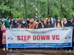 বক্তারা অভিযোগ করে বলেন, কোটা আন্দোলন বিরোধী বিভিন্ন কার্যকলাপের পরিপ্রেক্ষিতে ও বিগত সময়কালে ঘটে আসা বিভিন্ন অনাচারের দরুন বিশ্ববিদ্যালয় প্রশাসন বর্তমানে শিক্ষার্থীদের কাছে প্রশ্ন বিদ্ধ এবং সাধারণ শিক্ষার্থীরা সেখানে আস্থা হারিয়ে ফেলেছে। এসব বিষয়কে সামনে রেখে এবং বর্তমানে ক্যাম্পাসের পরিবেশ ও নিরাপত্তার কথা বিবেচনা করে আন্দোলনরত শিক্ষার্থীদের প্রবল অসহযোগিতা করায় উপাচার্য ও উপ- উপাচার্যের অনুগতদের স্বেচ্ছায় পদত্যাগ করতে হবে। এ সময় বক্তরা ভিসিকে দুর্নীতিবাজ ও স্বৈরাচারের দোসর বলে অভিহিত করেন। বিশ্ববিদ্যালয়ে ভিসি ব্যাপক দুর্নীতি করেছে বলেও ছাত্ররা দাবি করেন।