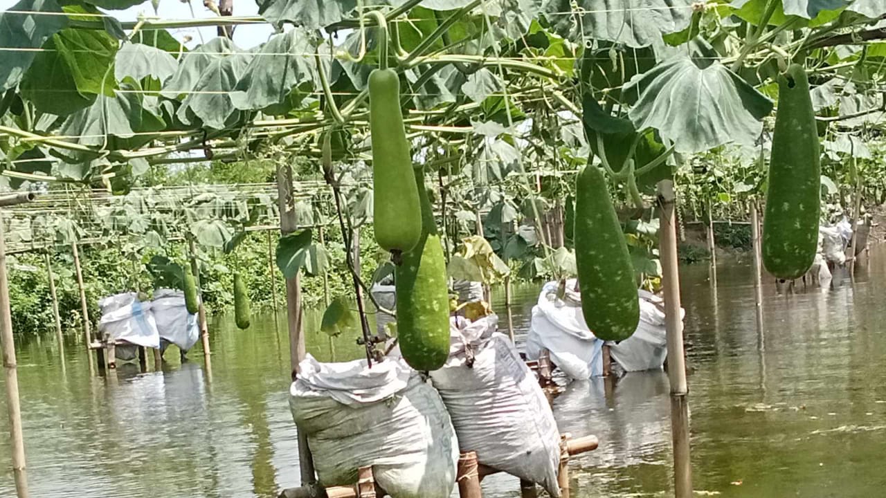 ঠাকুরগাঁওয়ে বস্তা পদ্ধতিতে ভাসমান লাউ চাষ, ফলনও ভালো ।
