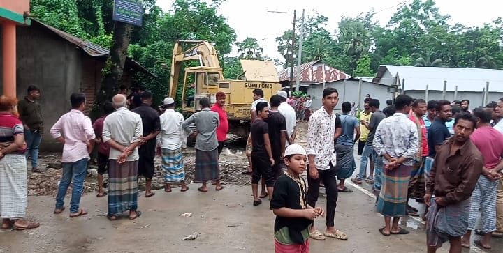 সেনবাগে জলাবদ্ধতায় খালের উপর ঘর নির্মাণে অবৈধ দখল উচ্ছেদ অভিযান