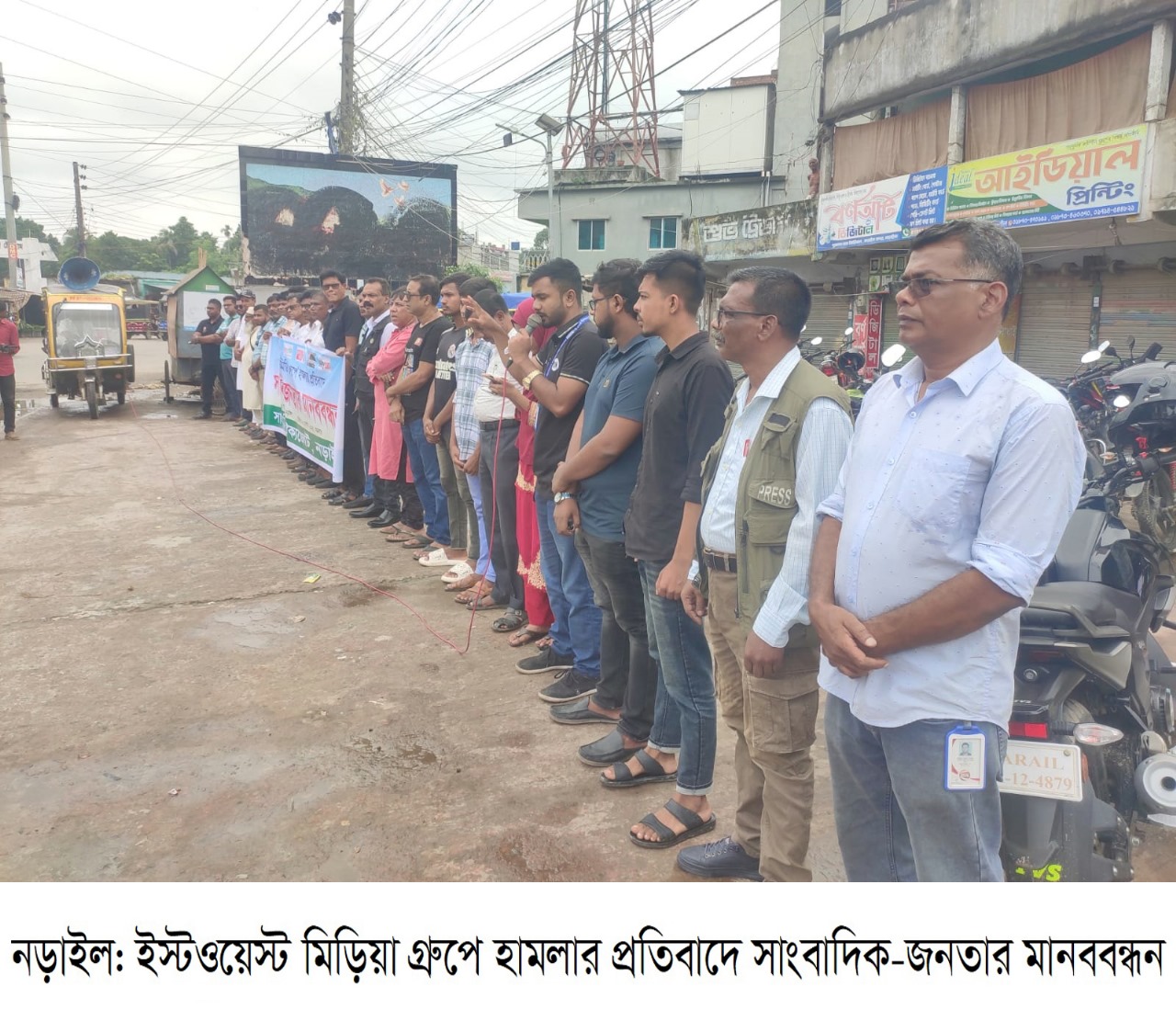 ইস্টওয়েস্ট মিড়িয়া গ্রæপে হামলা প্রতিবাদে নড়াইলে সাংবাদিক-জনতার মানববন্ধন