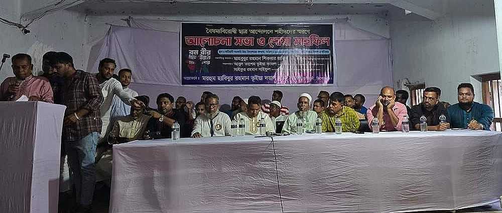 কটিয়াদীতে বৈষম্যবিরোধী ছাত্র আন্দোলনে শহীদদের স্বরণে আলোচনা সভা ও দোয়া মাহফিল অনুষ্ঠিত।