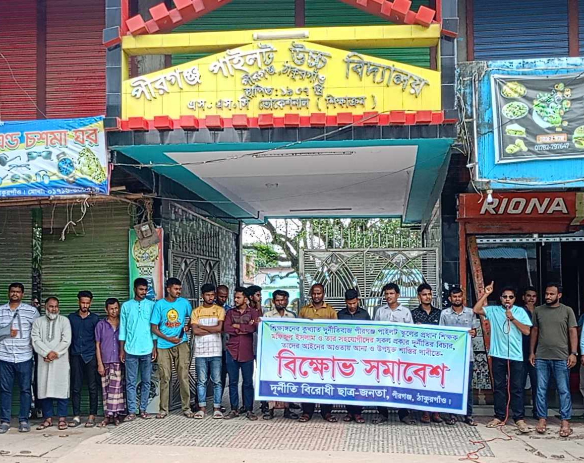 ঠাকুরগাঁওয়ে পীরগঞ্জে পাইলট উচ্চ বিদ্যালয়ের প্রধান শিক্ষকের দূর্নীতি বিচারের দাবীতে বিক্ষোভ সমাবেশ ।