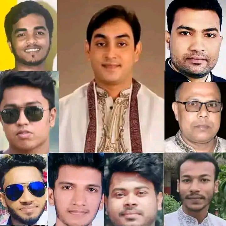 আসামীরা হলেন: --নরসিংদী জেলা আওয়ামী লীগের সাবেক সহ-সভাপতি ও বাংলাদেশ হিন্দু-বৌদ্ধ- খ্রিস্টান ঐক্য পরিষদের সাধারণ সম্পাদক দীপক সাহা, জেলা আওয়ামী লীগের সাবেক মানব সম্পাদক বিষয়ক সম্পাদক এস এম কাইয়ুম সরকার, নরসিংদী সদর উপজেলা পরিষদের ভাইস চেয়ারম্যান আঞ্জুমান আরা রিচি, নরসিংদী পৌরসভার সংরক্ষিত আসনের কাউন্সিলর ইয়াসমিন সুলতানা, জেলা ছাত্রলীগের সভাপতি আহসানুল ইসলাম রিমন, সাধারণ সম্পাদক শাহ জালাল আহমেদ শাওন, সদর উপজেলা শাখার সভাপতি রবিউল আলম একমি, সাধারণ সম্পাদক জুবায়েত সরকার, সহ-সভাপতি জাকির হোসেন বাবু, মেহেদী হাসান বাবু, সাব্বির আহমেদ, শহর ছাত্রলীগের সভাপতি এস এম ওয়াজেদ, সাধারণ সম্পাদক আনিক আহমেদ রিয়েল, নরসিংদী সরকারি কলেজের আহবায়ক রাকিব ভূঁইয়া, সিনিয়র যুগ্ম আহবায়ক আজিজুল ইসলাম সিফাত এবং ইউনিয়ন আহবায়ক বশির আহমেদ।