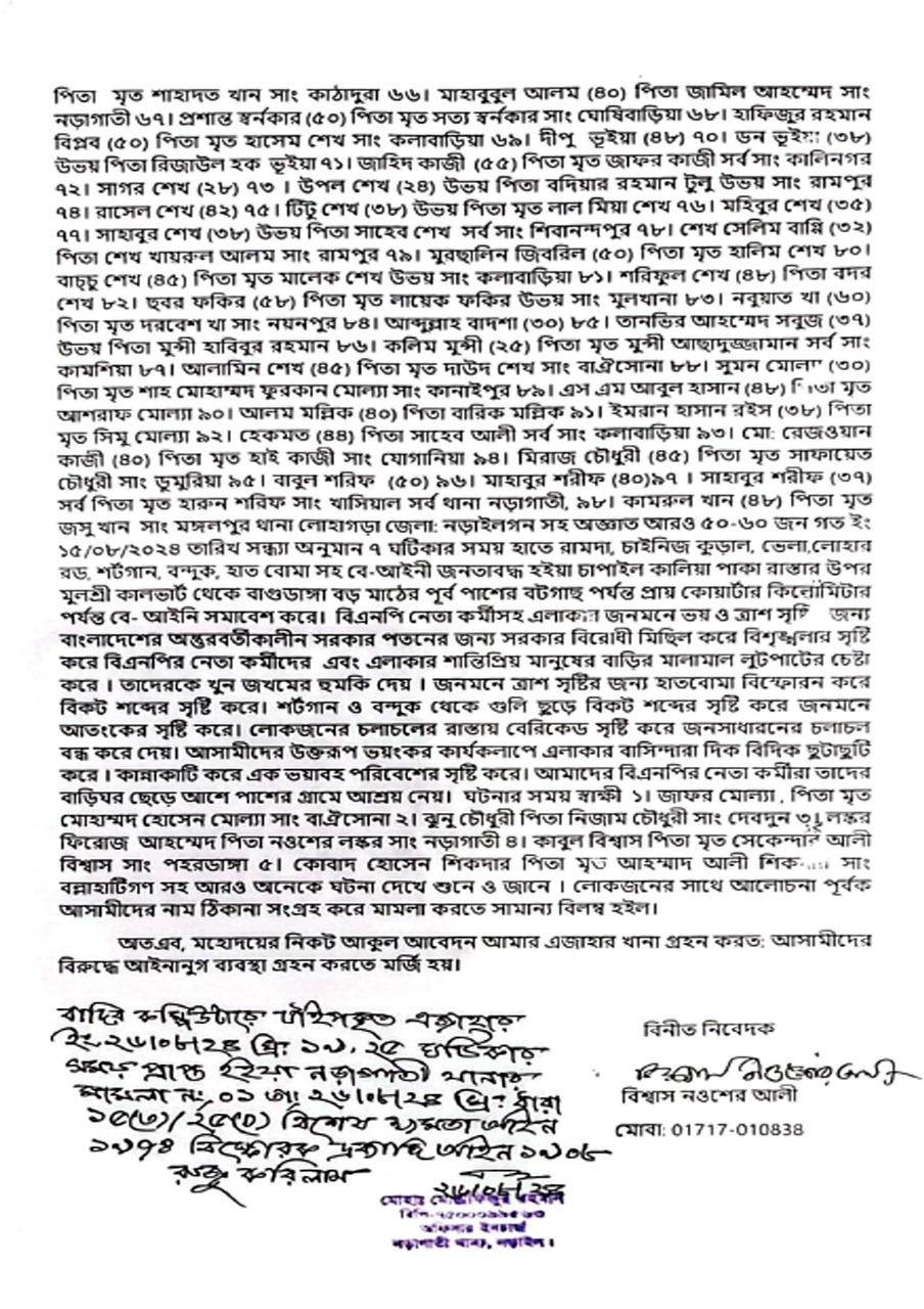 কালিয়ার নড়াগাতি থানায় মামলা সাবেক এমপি ও উপজেলা চেয়ারম্যানসহ ৯৮ জন আসামী