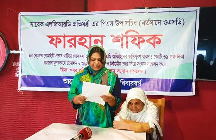 স্বামীর বিরুদ্ধে জমি দখল অভিযোগ মিথ্যা দাবী করে সংবাদ সম্মেলন করেন স্ত্রী৷