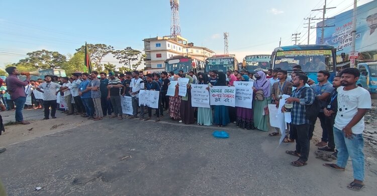 নরসিংদীতে টেক্সটাইল ইঞ্জিনিয়ারিং শিক্ষার্থীদের মহাসড়ক অবরোধ