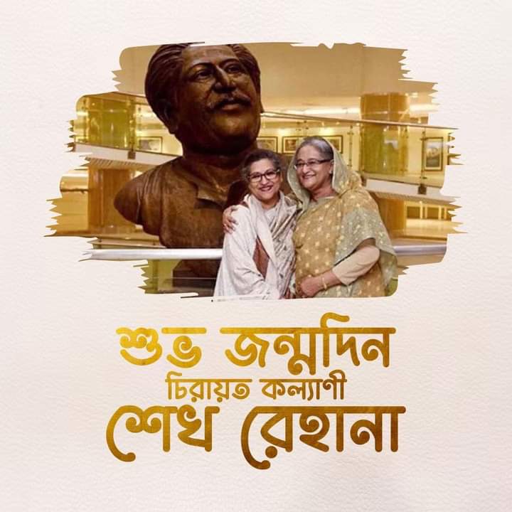 জাতির পিতা বঙ্গবন্ধু শেখ মুজিবুর রহমান ও বঙ্গমাতা শেখ ফজিলাতুন নেছা মুজিবের ছোট মেয়ে শেখ রেহানার ৭০তম জন্মদিন আজ।