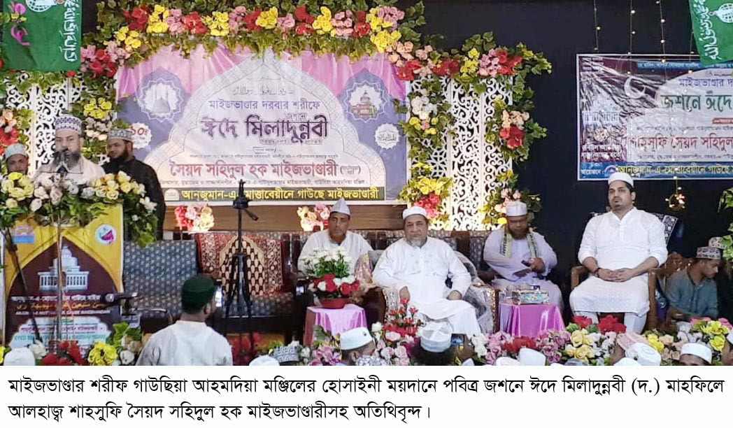 উপমহাদেশের অন্যতম আধ্যাত্বিক দরবার মাইজভাণ্ডার শরীফ গাউছিয়া আহমদিয়া মঞ্জিলের হোসাইনী ময়দানে পবিত্র জশনে ঈদে মিলাদুন্নবী (দ.) মাহফিল গত ১০ রবিউল আউয়াল ১৪৪৬ হিজরী, ১৪ সেপ্টেম্বর শনিবার বা'দ আসর থেকে আওলাদে রাসুল (দ.), গাউসুলআজম মাইজভাণ্ডারীর প্রপৌত্র, জাঁ-নশীনে অছিয়ে গাউসুলআজম, আলহাজ্ব শাহসুফি সৈয়দ সহিদুল হক মাইজভাণ্ডারী প্রকাশ ছোট হুজুর (ম.)'র সভাপতিত্বে আনজুমান-এ-মোত্তাবেয়ীনে গাউছে মাইজভাণ্ডারী কেন্দ্রীয় কমিটি ও খাদেমুল ফোকরা ফাউন্ডেশনের ব্যবস্থাপনায় অনুষ্ঠিত হয় ।