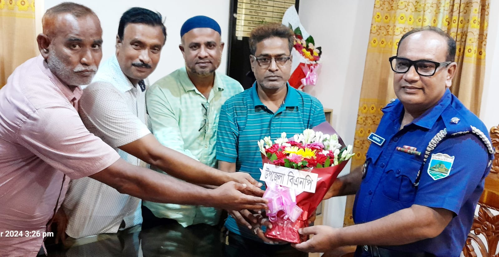 সুজানগর উপজেলা বিএনপি'র পক্ষ থেকে নবাগত ওসিকে ফুলেল শুভেচ্ছা প্রদান।