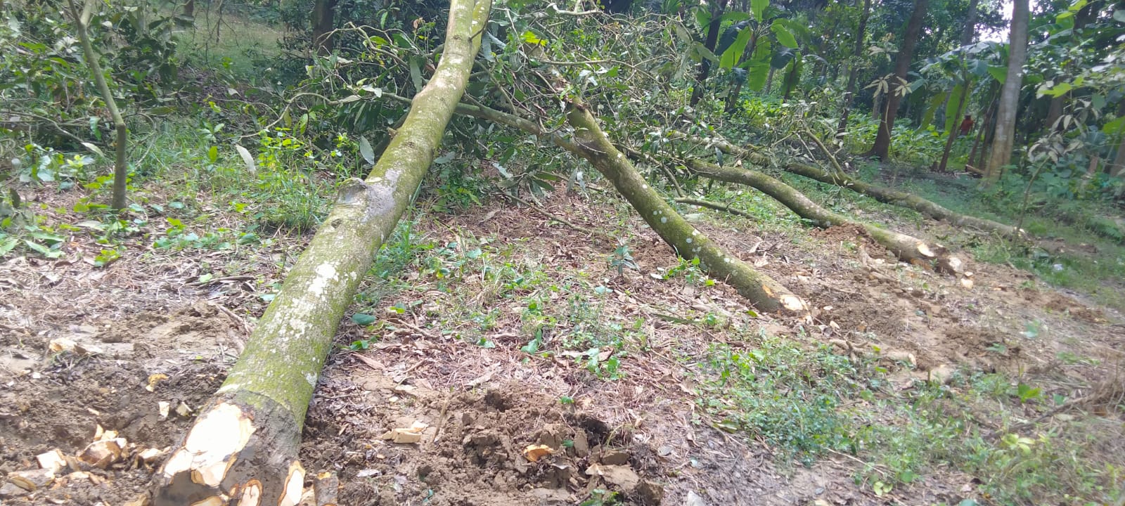 চুয়াডাঙ্গার মাধবখালীতে পেশী শক্তির প্রভাব খাটিয়ে আম বাগান কর্তন।