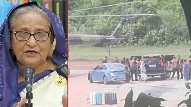 জানা যাচ্ছে ঢাকার একটি সেনা বিমান বন্দর থেকে তাঁর ফ্লাইটটি ওড়ে। ততক্ষণে গণভবনে লুটতরাজ শুরু হয়ে গিয়েছে। মিডিয়াতেও খবর হয়ে যায়, হাসিনা পালিয়েছেন। কিন্তু বিমানের রিপোর্ট বলছে, তিনি দেশ থেকে পালিয়েছেন বলে খবর হওয়ার পর আরও অন্তত দু-আড়াই ঘণ্টা ঢাকাতেই ছিলেন। হেলিকপ্টার তাঁকে গণভবন থেকে সেনা বিমান বন্দরে পৌঁছে দিয়েছিল।