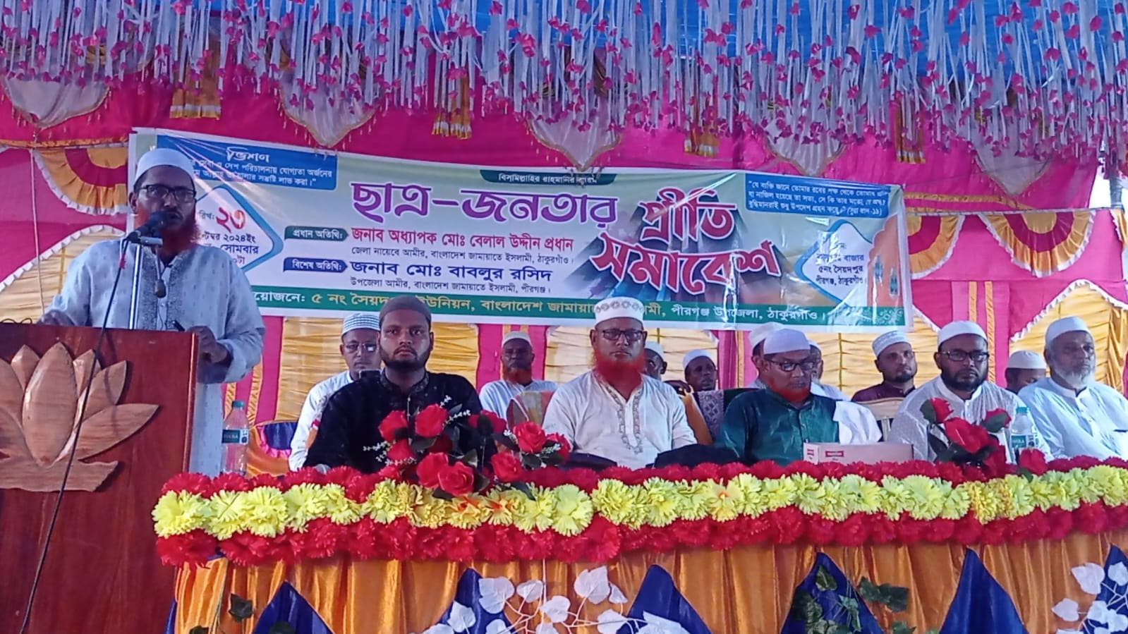এসময় বক্তব্য দেন জামায়াতে ইসলামী'র জেলা নায়েবে আমীর অধ্যাপক বেলাল উদ্দীন প্রধান, জেলা সেক্রেটারি মুহাম্মদ আলমগীর, পীরগঞ্জ উপজেলা জামায়াতের আমীর বাবলুর রশিদ, উপজেলা সেক্রেটারি ডাক্তার গোলাম মোস্তফা কামাল, বোচাগঞ্জ জেলা জামায়াতে ইসলামী'র আমিনুল ইসলাম, উপজেলা শ্রমিক কল্যাণ ফেডারেশনের সভাপতি বাবুল আহম্মেদ, সৈয়দপুর ইউনিয়ন জামায়াতে ইসলামীর তহিদুল ইসলাম, সেক্রেটারি আবেদ আলী, সহ ছাত্র শিবিরের অন্যান্য নেতৃবৃন্দ উপস্থিত ছিলেন।