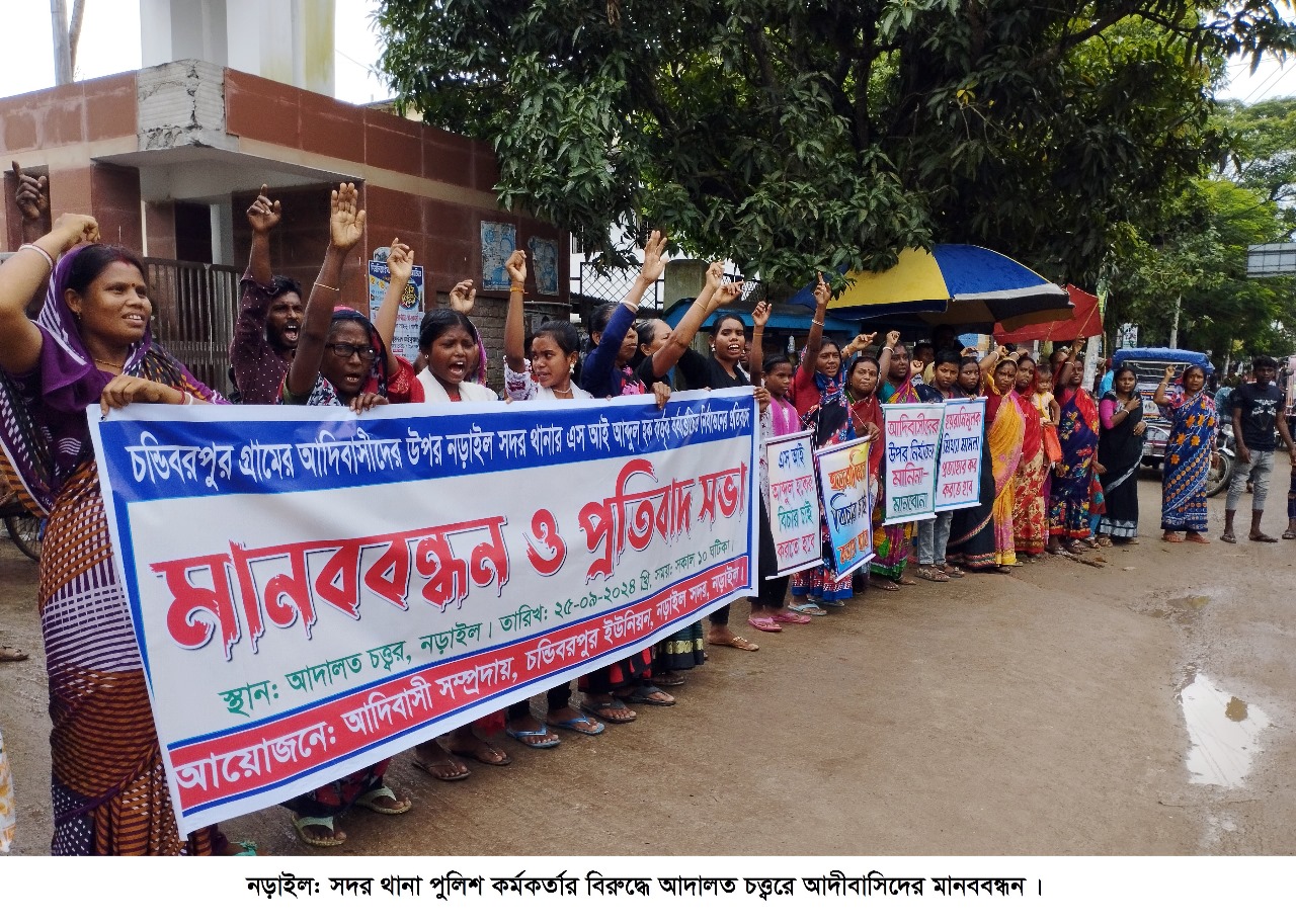 নড়াইলে পুলিশ কর্মকর্তার বিচারের দাবিতে আদিবাসিদের মানববন্ধন