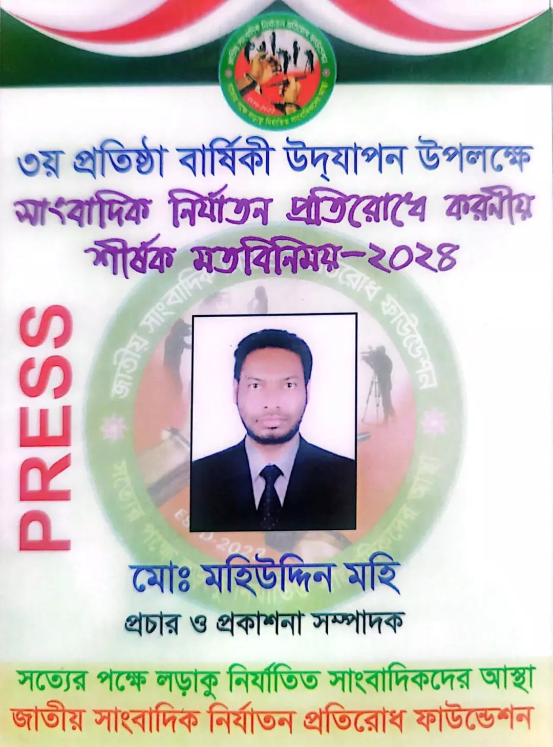 জাতীয় সাংবাদিক নির্যাতন প্রতিরোধ ফাউন্ডেশন এর ৩য় প্রতিষ্ঠা বার্ষিকীতে দ্বি-বার্ষিক কেন্দ্রীয় কমিটি গঠন