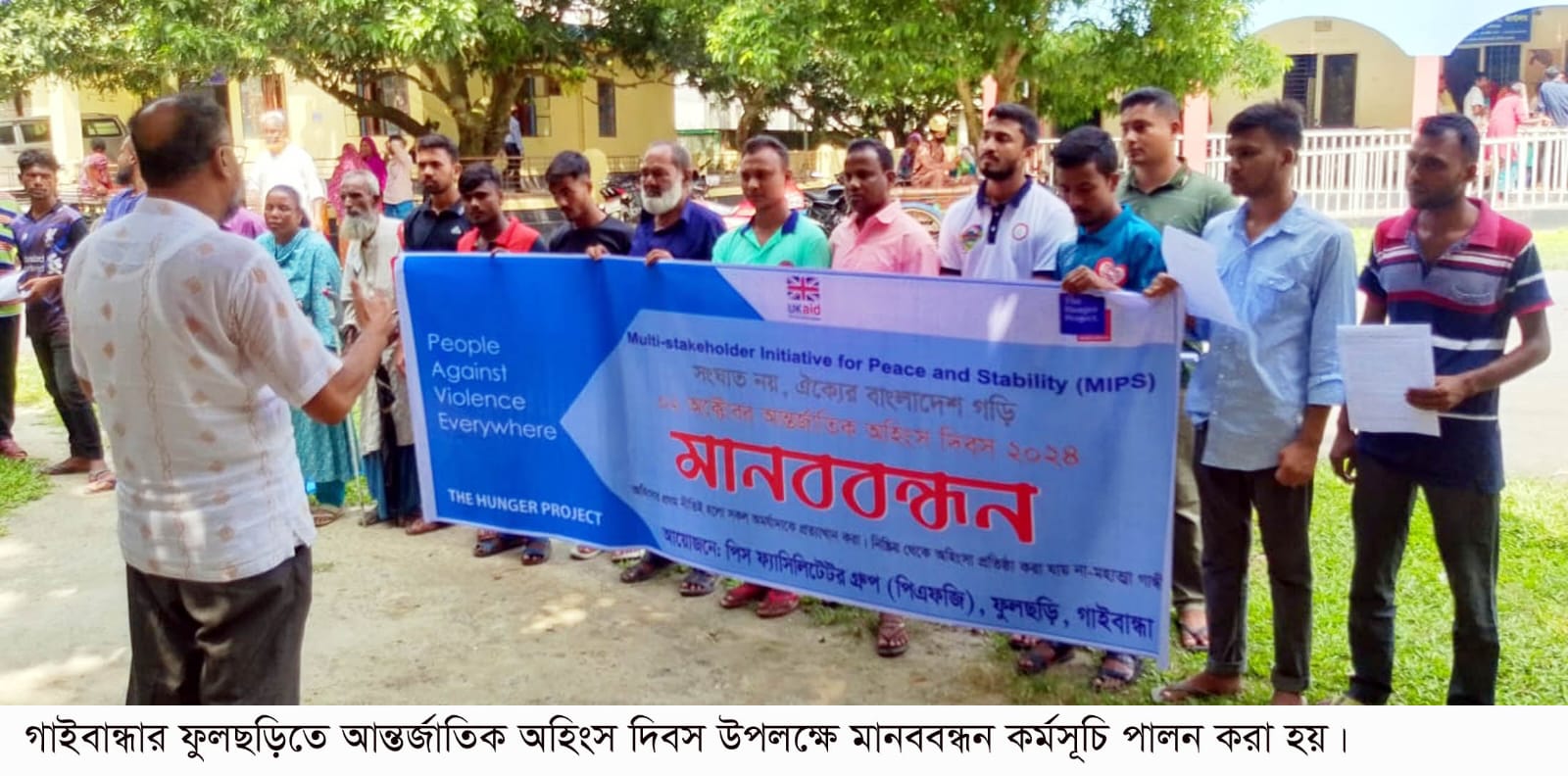 ফুলছড়িতে আন্তর্জাতিক অহিংস দিবস উপলক্ষে মানববন্ধন