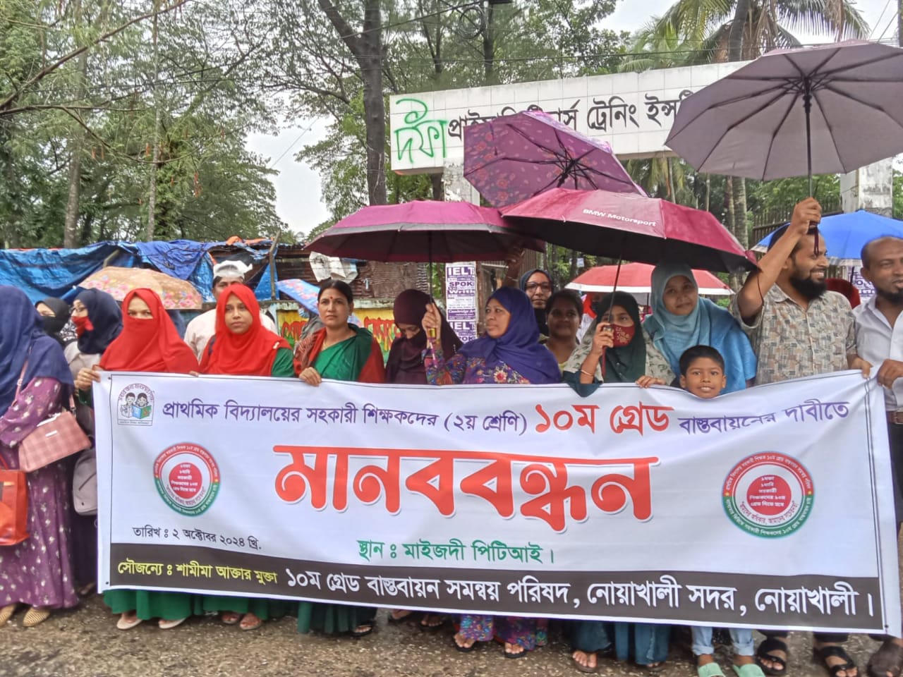 সারাদেশের ন্যায় নোয়াখালীতে সহকারী শিক্ষকদের দশম গ্রেডে বেতন নির্ধারণের দাবিতে মানববন্ধন - বাংলার মুক্ত কন্ঠ
