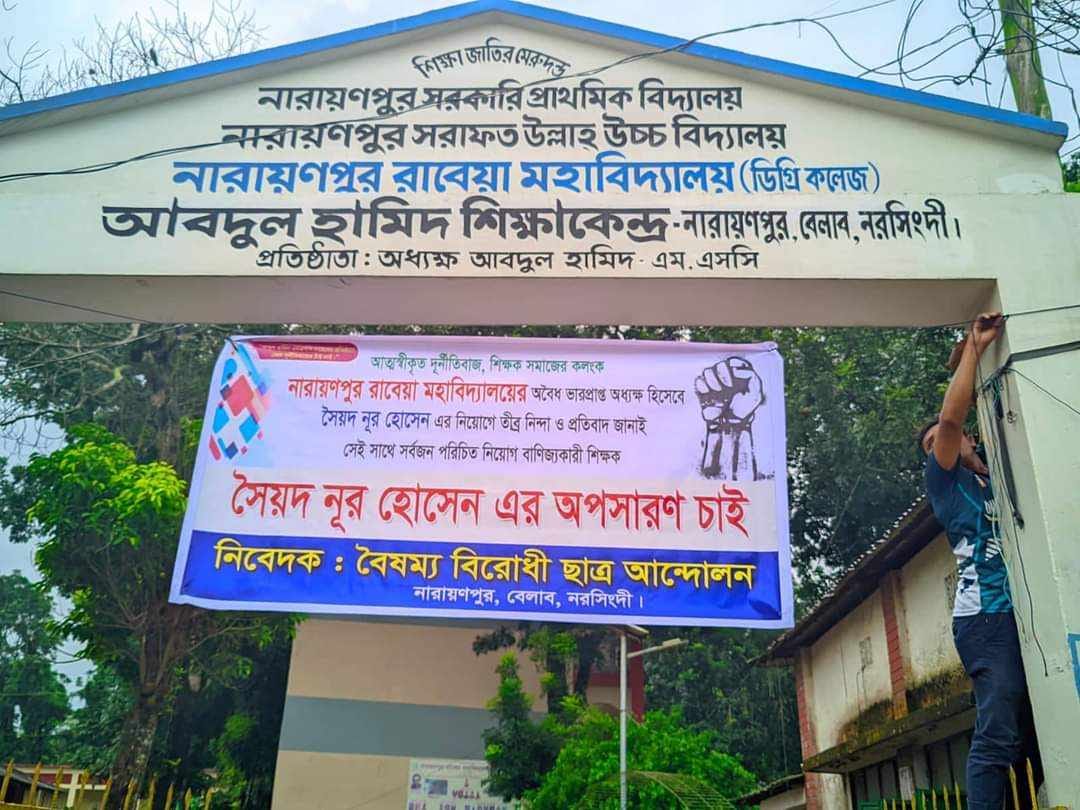 নরসিংদীতে নারায়ণপুর মহাবিদ্যালয়ের ভারপ্রাপ্ত অধ্যক্ষের অপসারণ দাবি শিক্ষার্থীদের