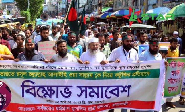 মহানবী (সা.) কে নিয়ে মানহানীকর বক্তব্য, রাজশাহীতে মুসল্লীদের বিক্ষোভ মিছিল ও মানববন্ধন