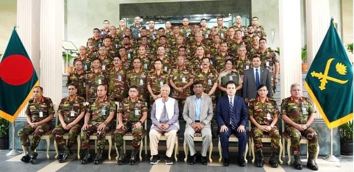 পদোন্নতি পর্ষদের মূল্যবান বক্তব্যে মাননীয় প্রধান উপদেষ্টা ছাত্র-জনতার বিপ্লবে সিক্ত নতুন বাংলাদেশে সকলকে স্বাগত জানান। এসময় তিনি গভীর শ্রদ্ধাভরে স্মরণ করেন জুলাই-আগস্ট মাসে বৈষম্যবিরোধী ছাত্র আন্দোলনে নিহত সকলের প্রতি। তিনি আরও স্মরণ করেন মহান স্বাধীনতা যুদ্ধে অংশগ্রহণকারী সশস্ত্র বাহিনী তথা সেনাবাহিনীর শহিদসহ সকল বীর সেনানীদের যাঁদের আত্মত্যাগ জাতি চিরদিন শ্রদ্ধাভরে স্মরণ করবে। মাননীয় প্রধান উপদেষ্টা পদোন্নতির জন্য অফিসারদের পেশাগত দক্ষতা, নেতৃত্বের গুণাবলী, শৃঙ্খলার মান, সততা, বিশ্বস্ততা ও আনুগত্য এবং সর্বোপরি নিযুক্তিগত উপযুক্ততার উপর গুরুত্বারোপ করতে নির্বাচনী পর্ষদের সদস্যদের নির্দেশনা প্রদান করেন। এছাড়াও সৎ, নীতিবান এবং নেতৃত্বের অন্যান্য গুণাবলী সম্পন্ন অফিসারগণই উচ্চতর পদোন্নতির দাবিদার বলে তিনি মন্তব্য করেন। তাছাড়া রাজনৈতিক মতাদর্শের উর্দ্ধে থেকে যে সমস্ত অফিসার সামরিক জীবনের বিভিন্ন কর্মকাণ্ডে যোগ্য নেতৃত্ব প্রদানে সফল হয়েছেন সেই সকল অফিসারদেরকে পদোন্নতির জন্য নির্বাচন করার নির্দেশনা প্রদান করেন। তিনি বলেন, দেশের ক্রান্তিলগ্নে বাংলাদেশ সেনাবাহিনী দেশের মানুষের পাশে এসে দাঁড়িয়েছে এবং একটি অন্তর্বর্তীকালীন সরকার গঠনের প্রক্রিয়াকে ত্বরান্বিত করে দেশকে এক অস্থিতিশীল পরিস্থিতির হাত থেকে রক্ষা করেছে। ফলশ্রুতিতে বাংলাদেশ সেনাবাহিনী আবারও দেশের মানুষের কাছে আস্থার প্রতীক হিসেবে স্বীকৃতি লাভ করেছে বলে তিনি তাঁর মূল্যবান বক্তব্যে উল্লেখ করেন।