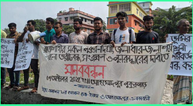 রাজশাহীর বোয়ালিয়া থানাধীন বোসপাড়া আহম্মেদপুর সরঃ প্রাঃ বিদ্যালয় সংলগ্ন পুকুর ভরাট বন্ধ, সংরক্ষণ ও পুনরুদ্ধারের দাবিতে মানববন্ধন ও স্মারকলিপি প্রদান কর্মসূচি পালিত হয়েছে।