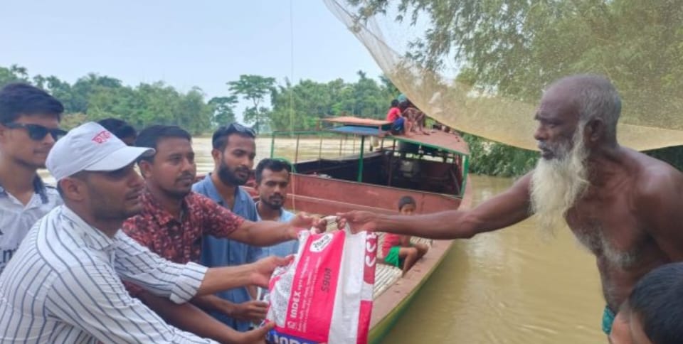 বন্যায় ক্ষতিগ্রস্তদের মাঝে শুকনা খাবার ও বিশুদ্ধ পানি বিতরণ করেছে ।