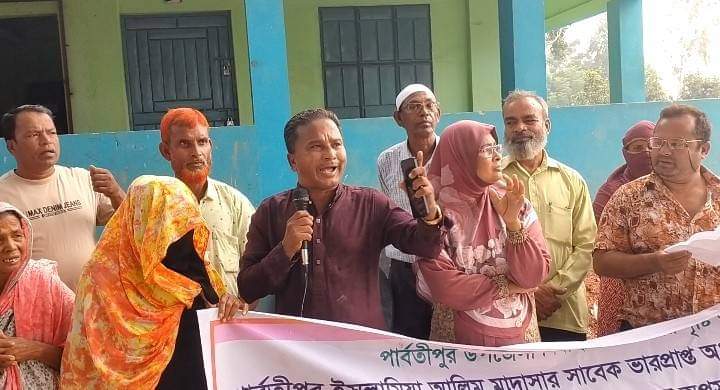 পার্বতীপুরে উপাধ্যক্ষসহ চার ভারপ্রাপ্ত অধ্যক্ষের অপসারণের দাবিতে এলাকাবাসী ও শিক্ষার্থীদের মানববন্ধন