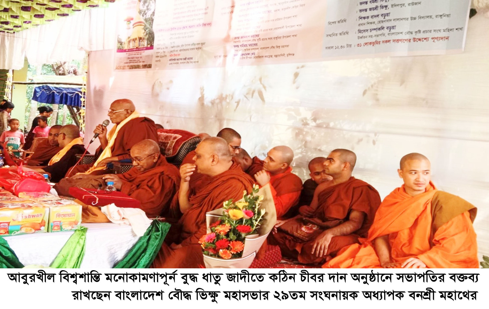 আবুরখীল দক্ষিন ঢাকাখালী বিশ্বশান্তি মনোকামণাপুর্ন জাদিতে কঠিন চীবর দান সম্পন্ন