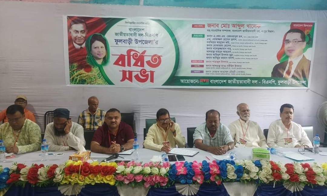 দিনাজপুরের ফুলবাড়ীতে উপজেলা বিএনপির আয়োজনে ও উপজেলার ১০১ জন নেতৃবৃন্দদের অংশগ্রহনে বর্ধিত সভা অনুষ্ঠিত হয়েছে।(গত ১৯ অক্টোবর) শনিবার সকাল ১১ টায় পৌর শহরের রাবেয়া কমিউনিটি সেন্টারে উপজেলা বিএনপির ভারপ্রাপ্ত সভাভাপতি মাওলানা নবীউল ইসলামের সভাপতিত্বে ও উপজেলা বিএনপির সাধারণ সম্পাদক মোস্তাক আহম্মেদ চৌধুরীর খোকনের সঞ্চালনায় উপজেলা বিএনপির বর্ধিত সভায় প্রধান অতিথি হিসেবে উপস্থিত ছিলেন রংপুর বিভাগের সহ-সাংগঠনিক সম্পাদক মো.আব্দুল খালেক। বিশেষ অতিথি হিসেবে উপস্থিত ছিলেন বিএনপির কেন্দ্রীয় নির্বাহী কমিটির সদস্য এ.জেড.এম রেজওয়ানুল হক দিনাজপুর জেলা বিএনপির সভাপতি এ্যাড.মোফাজ্জল হোসেন দুলাল,সাধারণ সম্পাদক বখতিয়ার আহমেদ কচি, সিনিয়র সহ-সভাপতি মোকাররম হোসেন,সহ-সভাপতি খালেকুজ্জামান বাবু, সহ-সভাপতি আলহাজ্ব মাহবুব আহমেদ,সাংগঠনিক সম্পাদক আমিনুল ইসলাম মুন্না, সাংগঠনিক সম্পাদক আনিছুর রহমান বাদশা। আমন্ত্রিত অতিথি হিসেবে উপস্থিত ছিলেন যুগ্ম-সাধারণ সম্পাদক মোঃ শাহাজুল ইসলাম। এসময় উপজেলা বিএনপির ৭ টি ইউনিয়নের ১০১ জন নেতাগন উপস্থিত ছিলেন। বর্ধিত সভায় প্রধান অতিথি রংপুর বিভাগ বিএনপি‘র সহ-সাংগঠনিক সম্পাদক মোঃ আব্দুল খালেক বলেন,গত ৫ আগস্ট বৈষম্যেবিরোধী ছাত্র-জনতার আন্দোলনের মধ্য দিয়ে এদেশ স্বৈরাচারী হাসিনা সরকারের হাত থেকে মুক্ত হয়েছে। বর্তমানে রাষ্ট্র সংস্কারের কাজ চলতেছে। এসময় আমাদেরকে ঐক্যবদ্ধ হতে হবে এবং কোনো রকম বিশৃঙ্খলা না করে সবাইকে একসাথে কাজ করতে হবে।