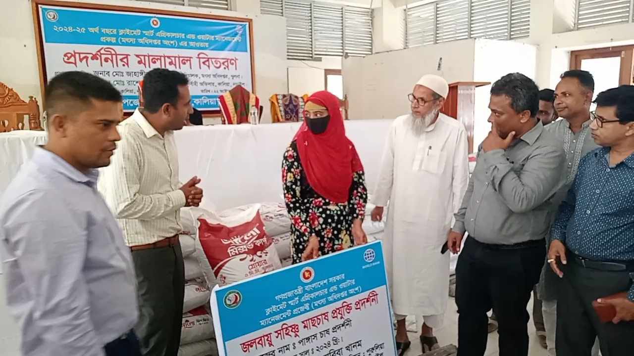 কালিয়ায় প্রদর্শনী মৎস্য খামারিদের মাঝে মালামাল বিতরণ। - বাংলার মুক্ত কন্ঠ