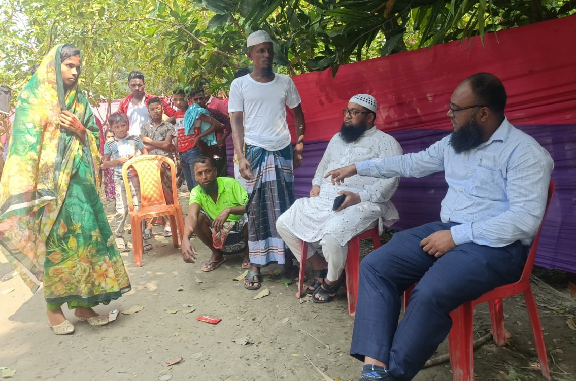 চরফ্যাশনে প্রশাসনের হস্তক্ষেপে বাল্য বিয়ের কবল থেকে রক্ষা পেলো মাদ্রাসা শিক্ষার্থী।। এম মাহবুবুর রহমান নাজমুল বিশেষ প্রতিনিধি।। চরফ্যাশন উপজেলার চরমাদ্রাজ ইউনিয়নের মোহাম্মদপুর গ্রামে ৮ম শ্রেণীর মাদ্রাসা শিক্ষার্থী (১৬) বাল্য বিয়ে বন্ধ করে দিয়েছেন চরফ্যাশন উপজেলা সহকারী কমিশনার(ভূমি) মোহাম্মদ আবুল হাছনাত। গতকাল সোমবার দুপুরে উপজেলা নির্বাহী অফিসার নওরীন হকের নির্দেশে তিনি বিয়ে বাড়ীতে গিয়ে বিয়ে বন্ধ করে দেন। সহকারী কমিশনার (ভূমি) মোহাম্মদ আবুল হাছনাত বলেন,উপজেলা নির্বাহী অফিসার নওরীন হকের নির্দেশে ঘটনাস্থলে গিয়ে আমরা সমন্বিত প্রচেষ্টার মাধ্যমে অপ্রাপ্তবয়স্ক একটি মেয়েকে বাল্যবিবাহের অভিশাপ থেকে বাঁচাতে সফল হয়েছি। বাল্যবিবাহ দেওয়া যাবে না এ মর্মে কনের পিতা জহির মাঝির কাছ থেকে মুচলেকা নেওয়া হয়েছে। জননিরাপত্তা ও আর্থসামাজিক উন্নয়নে আমাদের এ ধরণের কার্যক্রম অব্যাহত থাকবে। স্থানীয়রা জানান,বেলা ১২টার দিকে উপজেলা সহকারী কমিশনার(ভূমি)মোহাম্মদ আবুল হাছনাত বিয়ে বাড়িতে গিয়ে কনে,কনের বাবা,মা এবং সেখানে আগত স্থানীয় লোকজনের সামনে বাল্য বিবাহের কুফল সম্পর্কে আলোচনা করেন। এসময় তিনি ১৮বছর না হতে কনের বিয়ে দেয়া যাবে না মর্মে পিতা জহির মাঝির কাছ থেকে মুছলেকা গ্রহন করে বিয়েটি বন্ধ করে দেন।