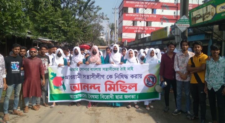 ছাত্রলীগ নিষিদ্ধ হওয়ায় মনোহরদীতে আনন্দ মিছিল অনুষ্ঠিত