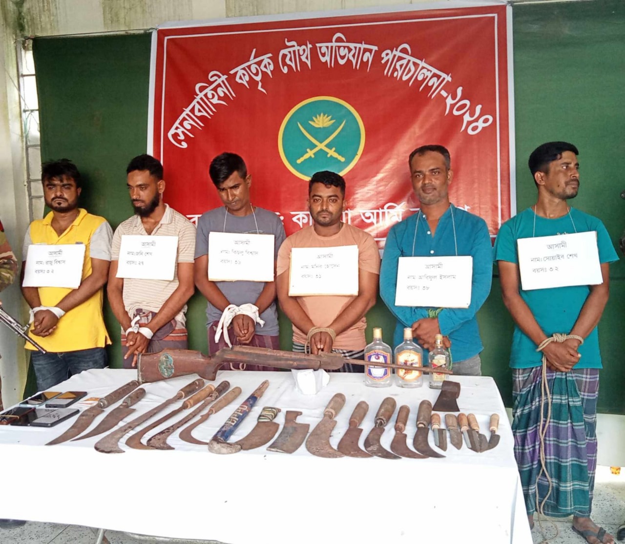 কালিয়ায় সেনাবাহিনীর অভিযানে অস্ত্র উদ্ধার, আটক ৬