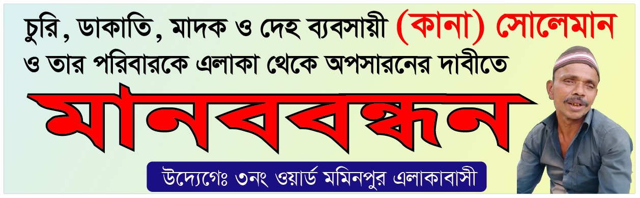 নোয়াখালীর চাটখিলে (কানা) সোলেমান ও তার পরিবারকে এলাকা থেকে অপসারণের দাবীতে মানববন্ধন। - বাংলার মুক্ত কন্ঠ