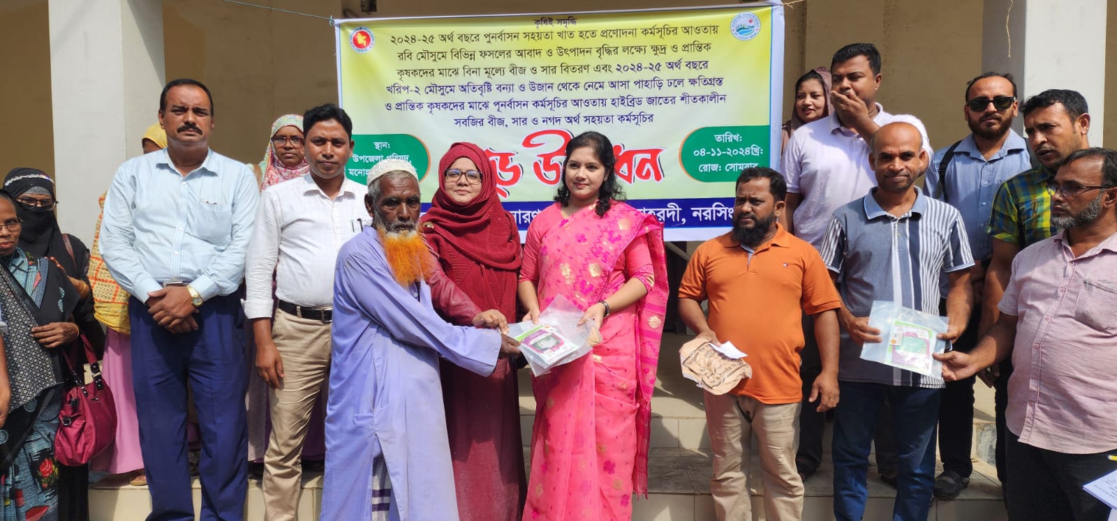 মনোহরদীতে ক্ষুদ্র ও প্রান্তিক কৃষকদের মাঝে বিনামূল্যে বীজ ও সার বিতরণ করা হয়েছে