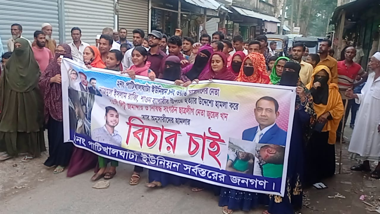 ঝালকাঠির কাঠালিয়ায় ছাত্রদল নেতার উপর সন্ত্রাসী হামলার বিচার দাবীতে মানববনব্ধন