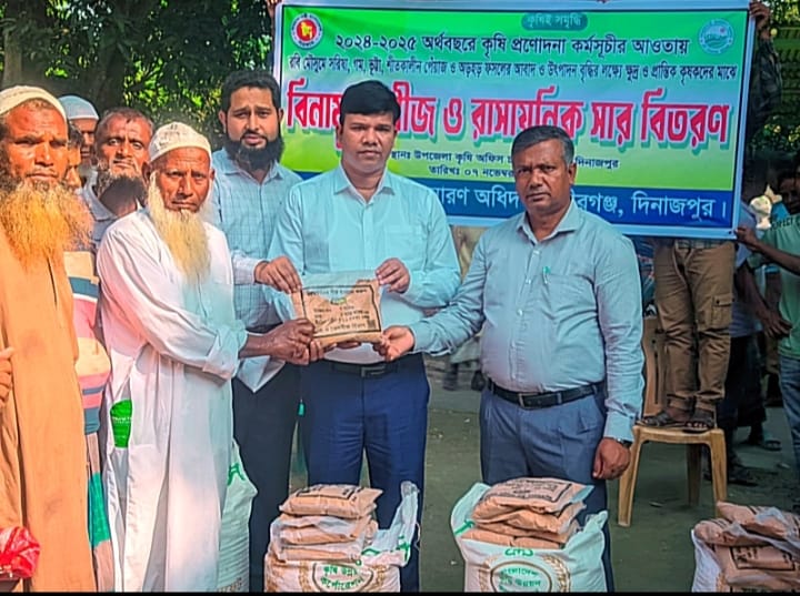 বীরগঞ্জে প্রান্তিক কৃষকদের মাঝে সার ও বীজ বিতরণ