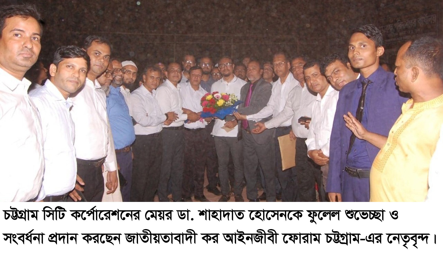 চট্টগ্রাম সিটি কর্পোরেশনের নবনিযুক্ত মেয়র ডা.শাহাদাত হোসেনকে জাতীয়তাবাদী কর আইনজীবী ফোরাম চট্টগ্রাম-এর ফুলেল শুভেচ্ছা ও সংবর্ধনা - বাংলার মুক্ত কন্ঠ