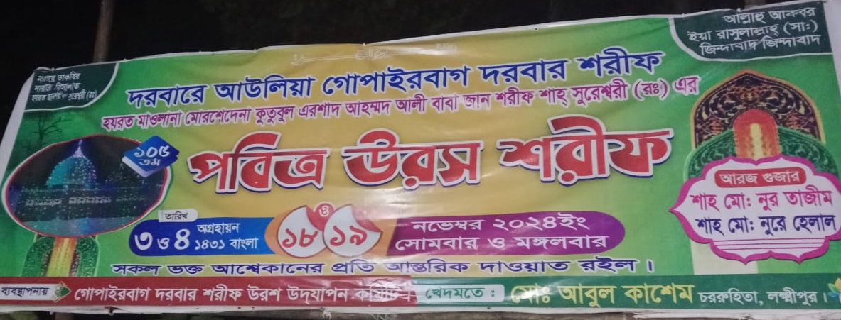 নোয়াখালীর চাটখিল দরবারে আউলিয়া গোপাইরবাগ দরবার শরীফে ১০৫ তম পবিত্র উরস শরীফ।