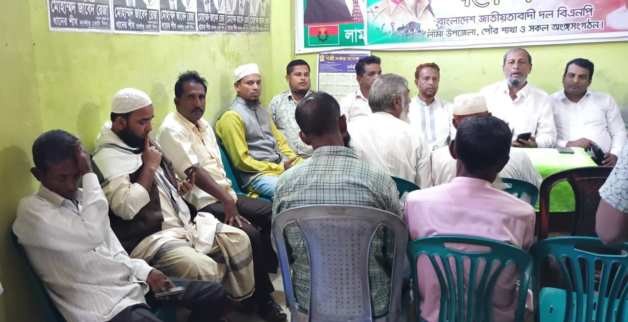 (স্টাফ রিপোর্টার:- মোঃ নুরুল আলম৷) জাতীয়তাবাদী দল বিএনপি বান্দরবান জেলা সভাপতি মিসেস মাম্যাচিং ও সাধারণ সম্পাদক জনাব মোঃ জাবেদ রেজার নেতৃত্বে লামা উপজেলায় বিশাল জনসভা অনুষ্ঠিত হতে যাচ্ছে। জনসভা কে ঘিরে লামা উপজেলা বিএনপির নিজ কার্যালয়ে আলোচনা সভা অনুষ্ঠিত হয়। আলোচনা সভায় উপস্থিত ছিলেন। লামা উপজেলা বিএনপি'র সভাপতি জনাব মোঃ আব্দুর রব, ভারপ্রাপ্ত সাধারণ সম্পাদক মোঃ জাহাঙ্গীর আলম খাঁন এডভোকেট, প্রশিক্ষণ বিষয়ক সম্পাদক মোঃ নুরুল আলম। পৌর আহ্বায়ক মোঃ সাইফুদ্দিন,সদস্য সচিব মোঃ ইউসুফ, উপজেলা মহিলা সভাপতি মিসেস সরাবান তহুরা,সাধারণ সম্পাদিকা মিসেস রাবেয়া আক্তার,উপজেলা কৃষকদলের সভাপতি মোঃ জহিরুল ইসলাম।আরো উপস্থিত ছিলেন উপজেলা পৌর নেতৃবৃন্দ ও সকল ইউনিয়ন হইতে আগত সভাপতি সেক্রেটারি মহোদয়গণ।