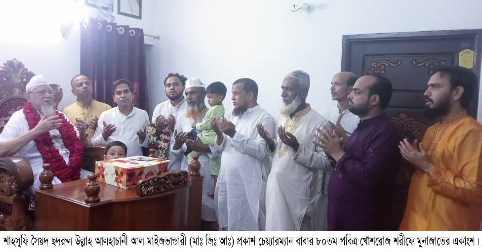 শাহসুফি সৈয়দ ছদরুল উল্লাহ আলহাচানী আল মাইজভান্ডারী (মাঃ জিঃ আঃ) প্রকাশ চেয়্যারম্যান বাবার ৮০তম পবিত্র খোশরোজ শরীফ অনুষ্ঠিত