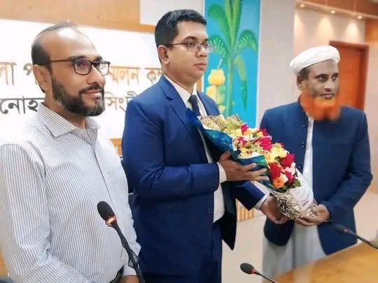 মো.এমরুল ইসলাম,ষ্টাফ রিপোর্টার,নরসিংদীঃ নরসিংদীর মনোহরদীতে নবাগত নির্বাহী অফিসারের সাথে প্রতিষ্ঠান প্রধানগণের শুভেচ্ছা বিনিময় অনুষ্ঠিত হয়েছে। রোববার (২৪ নভেম্বর)নবাগত উপজেলা নির্বাহী অফিসার এম.এ মুহাইমিন আল জিহান এর সাথে ফুলেল শুভেচ্ছা বিনিময় করেন মনোহরদী উপজেলার সকল শিক্ষা প্রতিষ্ঠান প্রধানগণ। নবাগত নির্বাহী অফিসার এম.এ মুহাইমিন আল জিহান প্রতিষ্ঠান প্রধানগণের সাথে কুশল বিনিময় করেন এবং সচ্ছ ও সুশৃঙ্খল মনোহরদী গঠনে তাঁদের সার্বিক সহযোগিতা কামনা করেন। এসময় মনতলা সিনিয়র ফাজিল মাদ্রাসার অধ্যক্ষ মাও.বাকিউল ইসলাম,খিদিরপুর(ডিগ্রী)কলেজ এর ভারপ্রাপ্ত অধ্যক্ষ মো.নাজিম উদ্দীনসহ উপজেলার অন্যান্য শিক্ষাপ্রতিষ্ঠানের প্রধানগণ এবং অন্যান্য দপ্তরের কর্মকর্তাবৃন্দ উপস্থিত ছিলেন।