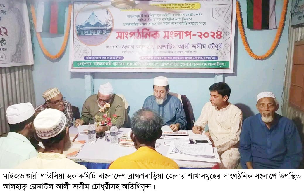 মাইজভাণ্ডারী গাউসিয়া হক কমিটি বাংলাদেশ ব্রাহ্মণ বাড়িয়া জেলার শাখাসমূহের সাংগঠনিক সংলাপ সম্পন্ন